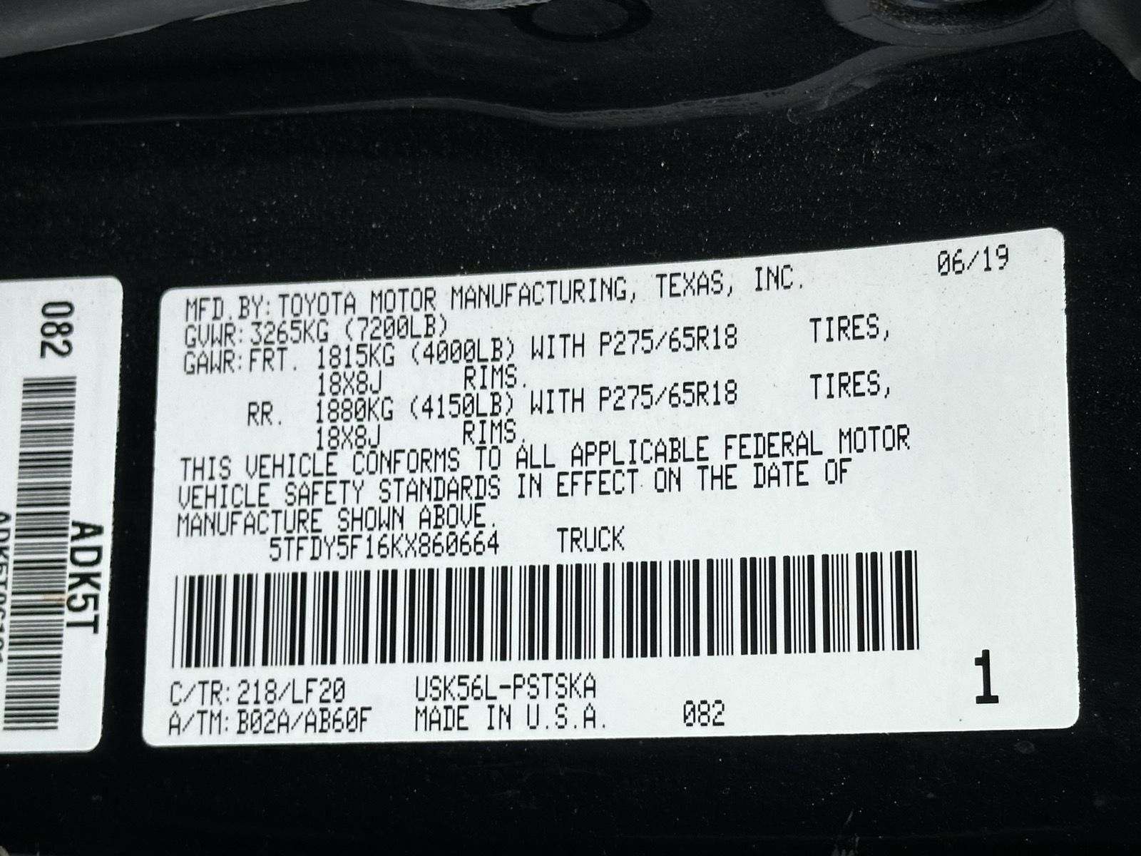 VIN: 5TFDY5F16KX860664