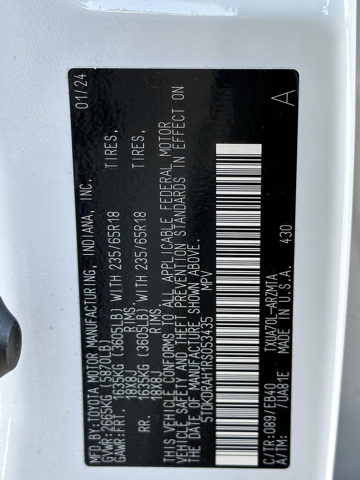 VIN: 5TDKDRAH1RS053435