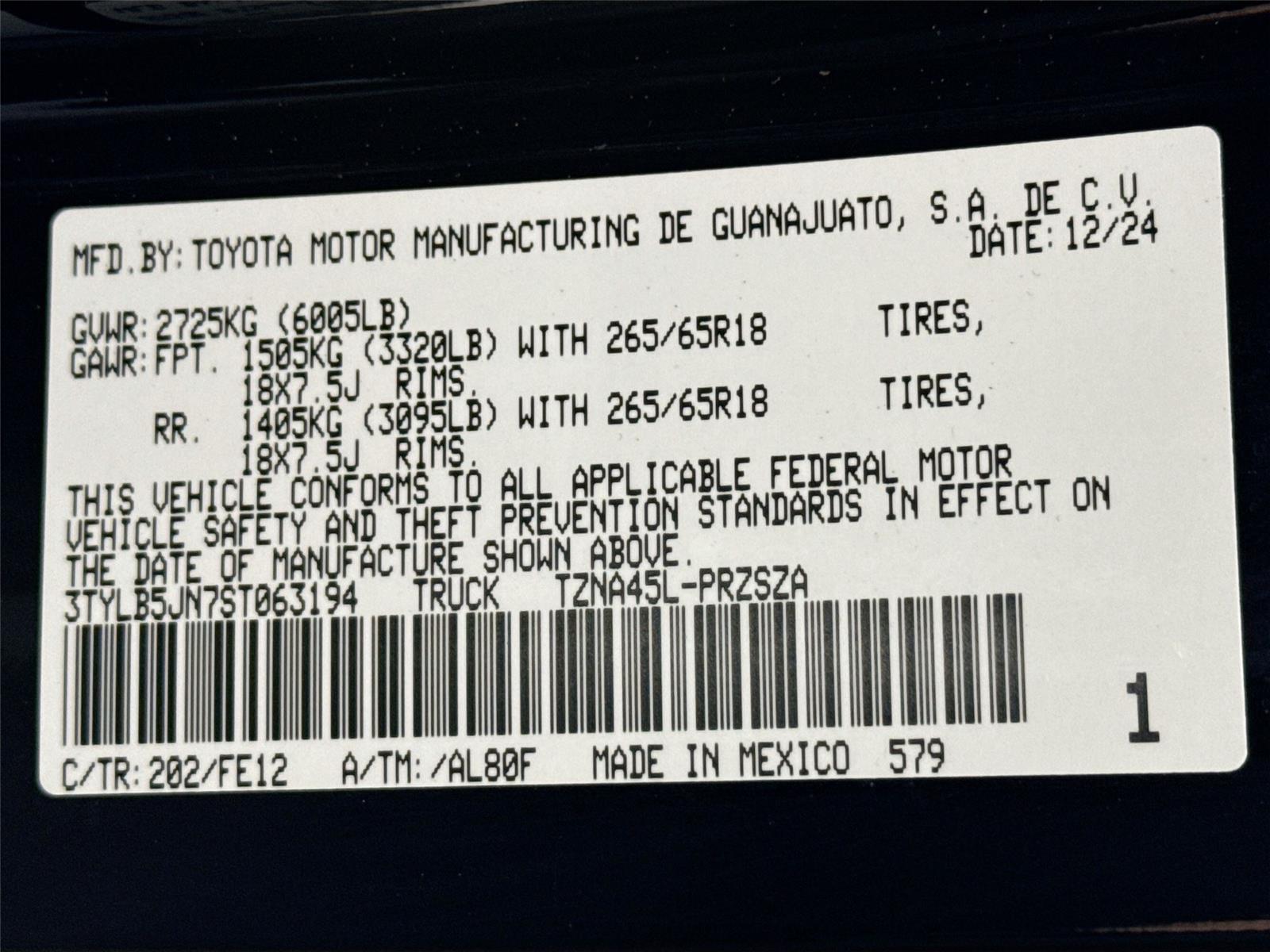 VIN: 3TYLB5JN7ST063194